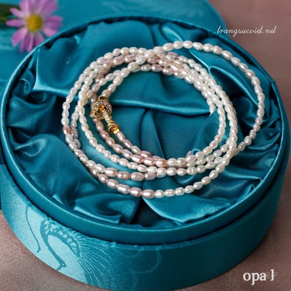 🌺Cùng Opal khám phá sự đa dạng phong cách đeo của chuỗi ngọc trai hạt gạo mix nhẹ màu trắng và ánh tím này .